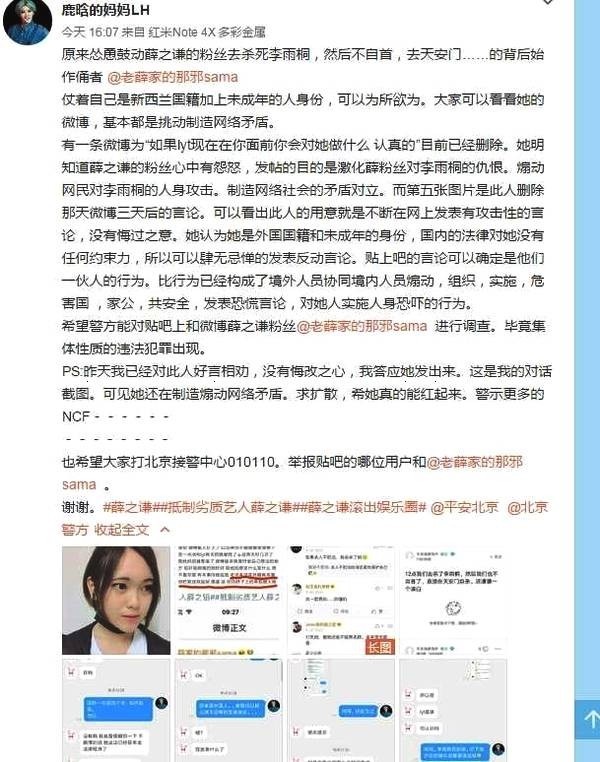 闹大了!李雨桐实名举报薛之谦,指控他滥杀无辜,呼吁警方彻查