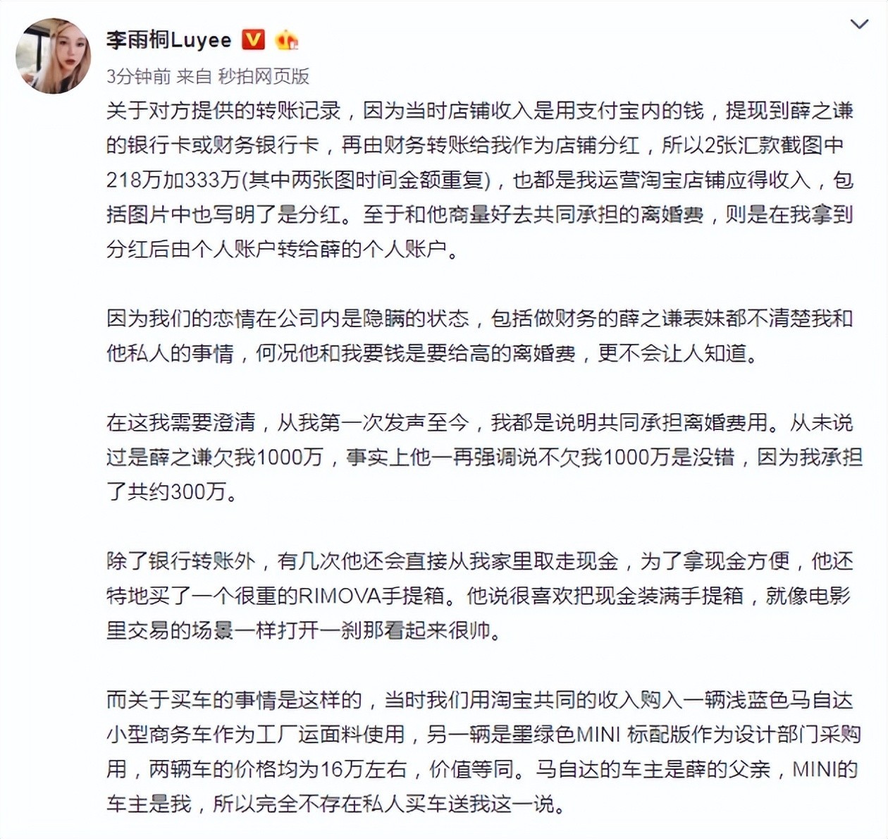 而且李雨桐这次发文的密度和语气,看得出来情绪已经积压到了顶点,二十余条微博连番轰炸,没有多余的铺垫,全是直接的指控,换谁看了都会觉得震惊。